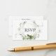 Notre carte d'enceinte RSVP de mariage est dotée d'une pièce centrale en couronne de verdure.