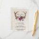Carte de mariage en bois floral Bohème rustique - La carte comporte des bois de cerf Bohème ornés de fleurs magnifiques rose clair, blanches et bordeaux. Ces invitations bohèmes présentent des bois de cerf en bois avec des fleurs sur un fond en bois.