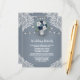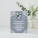 Présentent un fond bleu poussiéreux ou bleu ardoise/acier avec dentelle imprimée blanche, guirlandes lumineuses et un pot Mason rempli d'éléments floraux, de verdure et plus encore.