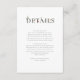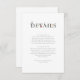 Introduire la Faire-part de mariage "Leander" - un témoignage de l'élégance minimaliste avec une touche de jardin fantaisiste. Au coeur de ce design se trouve une toile blanche immaculée, offrant un cadre serein qui évoque une grâce intemporelle. La typographie, une police serif soigneusement choisie, est centrée - son style classique exubérant le raffinement tout en restant merveilleusement sobre. Ce qui distingue véritablement le Leander, c'est l'adoption délicate d'illustrations fleurs sauvages qui encadrent le texte. Ces minuscules détails floraux espacés sont plus que de simples décorations ; ils sont un clin d'oeil subtil à un jardin fantaisiste, apportant une sensation organique et terne au design. L'esthétique générale de l'invitation Leander est celle d'une fantaisie minimaliste - un équilibre parfait entre simplicité et enchantement. C'est une invitation conçue non seulement pour annoncer votre journée spéciale, mais pour incarner l'esprit d'amour, de nature et d'élégance sous-jacente.