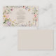 Améliorez votre suite mariage avec notre Boho Fleur sauvage Floral Enclôture Card, la façon idéale de partager des détails importants avec vos invités. Cette carte polyvalente présente le même design fleur sauvage délicat que le reste de la collection Boho Fleur sauvage, idéal pour transmettre des informations supplémentaires comme l'hébergement, les itinéraires ou les demandes spéciales. Caractéristiques principales : Charmante décoration florale : Décorée avec des illustrations fantaisistes de fleurs sauvages, y compris la lavande, les marguerites et le feuillage pour un look cohésif et bohème. Palette de Terre Coordonnée : Doux, vert sauge et neutrales chauds créent une harmonie parfaite avec votre suite de faire-part de mariage. Détails personnalisés : Entièrement personnalisable pour inclure toutes les informations supplémentaires, telles que les directions, les détails de la réception, le code vestimentaire ou un lien vers un site Web mariage. Carton Texturé Premium : Conçu sur papier de haute qualité avec une texture douce et artisanale pour ajouter une touche d'élégance supplémentaire. Options de taille flexible : Disponible en plusieurs tailles pour s'adapter parfaitement à votre enveloppe d'invitation. La Boho Fleur sauvage Floral Enclume Card apporte à la fois style et fonctionnalité à votre suite mariage, vous permettant de communiquer avec élégance chaque détail tout en reflétant la beauté d'esprit libre de votre célébration.