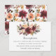 Carte de réception de mariage floral à l'aquarelle tendance avec des accents de bordeaux - vin de Bourgogne et orange pêche rosée.