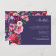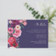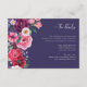 Carte d'insertion de mariage florale audacieuse et colorée. Assurez-vous que vos invités aient tous les détails essentiels avec cette élégante carte d'insertion, présentant un magnifique bouquet latéral de fleurs aquarelles dans des tons de pierres précieuses de rose, de bordeaux, de bleu et de violet, rehaussé d'eucalyptus et de verdure, sur un fond ivoire classique. Idéale pour toutes les saisons, d'un mariage automnal ou hivernal chaleureux à une célébration de jardin printanière ou estivale lumineuse, cette carte entièrement personnalisable vous permet de partager des informations clés tout en maintenant une esthétique cohérente et luxueuse dans l'ensemble de votre suite de mariage. REMARQUE : le texte est bleu marine pour correspondre à la collection, mais peut être facilement modifié.