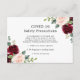 Carte d'information sur la Sécurité COVID-19 pour un Mariage Floral Rouge & Blush