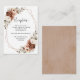 Carte de réception de mariage sur le thème floral élégant et terreux de la terre cuite orange, avec un bouquet élégant de roses, de pivoines et de feuilles d'eucalyptus de couleur blanche, beige, sauge et terre cuite. N'hésitez pas à me contacter pour toute aide de personnalisation ou si vous avez besoin d'un autre produit avec ce design