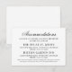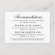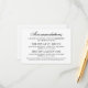 Aidez vos invités à planifier leur séjour avec cette carte d'invitation de mariage avec le script « Hébergement » et une mise en page noire et blanche épurée. Comprend un espace pour les détails du bloc d'hôtel, les numéros de téléphone et les notes de réservation. Minimaliste et intemporel - parfait pour les suites de mariage classiques formelles, traditionnelles et modernes.