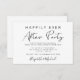 Carte d'enceinte moderne pour un rassemblement après la fête après votre cérémonie de mariage ou réception. Le devant présente "Happily Ever After Party" dans un mélange de typographie simple et d'un script chic. Customisez votre invitation et ajoutez vos noms dans un script de type signature.