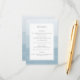 Carte d'information de mariage moderne bleu. Cette belle et élégante carte d'information sur les détails du mariage en bleu poussiéreux présente un fond ombré peint à l'aquarelle avec une bordure blanche. Le verso de l'invitation comprend le même fond aquarelle bleu. Trouvez des articles assortis dans la collection de mariage ombré aquarelle bleu poussiéreux.