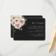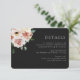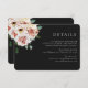 Elégante carte noire de boîtier. Cette carte de détails mariage foncé romantique et moody présente une belle aquarelle peinte à la main rose vif et une élégante verdure à l'avant et à l'arrière. Trouvez les objets correspondants dans la collection Elegant Dark Mariage.