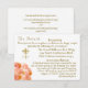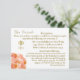 Conçu pour coordonner avec la Suite Mariage catholique Rose de Terracotta, ce design est simple mais élégant. Votre texte est présenté dans une couleur dorée affichée au format approprié pour une carte jointe et affiche le symbole traditionnel croix et anneaux pour le mariage à gauche du texte. L'image d'un bouquet de terre cuite et de rose de pêche est affichée en bas à gauche. Inverser les fonctions site/sites du registre des mariages. (Facultatif) Si vous choisissez de ne pas inclure votre registre, supprimez simplement l'échantillon et laissez cette zone vide. L'image de deux roses liés est affichée ci-dessous.