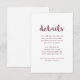 La carte de détails de l'invité rose rose et blanc mariage présente une typographie de script blanc et un design minimal.