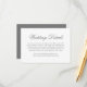 Carte mariage traditionnelle avec le mot "détails" dans une calligraphie élégante. Tout le texte est gris moyen sur un arrière - plan blanc et peut être modifié en n'importe quelle couleur en cliquant sur le bouton "personnaliser". Utilisez ces cartes d'enclos pour indiquer l'itinéraire et tout autre détail mariage important que vos invités pourraient avoir besoin de connaître, comme l'hébergement à l'hôtel, le stationnement, les informations sur la navette, etc. Ce design classique est parfait pour un mariage formel.