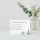La Forest Trees Mariage Accommodations Enclusion Card est un ajout charmant et instructif à toute suite de faire-part de mariage inspirée de la nature. Cette carte compacte est élégamment conçue, avec une scène forestière enchanteresse avec de grands arbres majestueux qui évoquent un sentiment de tranquillité et de beauté naturelle.