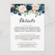 Belle carte de détails mariage boho fleurie dispose d'aquarelle peinte à la main graphismes floraux / roses dans les tons riches de bleu marine et rose rousse / pêche et charmante lettrage à la main police. Veuillez me contacter pour toute aide sur la personnalisation ou si vous avez besoin d'un autre produit avec ce design.
