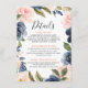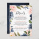 Belle carte de détails mariage boho fleurie dispose d'aquarelle peinte à la main graphismes floraux / roses dans les tons riches de bleu marine et rose rousse / pêche et charmante lettrage à la main police. Veuillez me contacter pour toute aide sur la personnalisation ou si vous avez besoin d'un autre produit avec ce design.