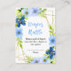 Cette belle et élégante carte d'enclos en raphia à couche présente des fleurs bleu bébé et bleu marine aquarelle avec feuillage sur un cadre géométrique or. Le texte combine écriture manuscrite et polices serif pour un look élégant et moderne. Il est parfait pour un baby shower rustique de printemps ou d'été.