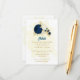 Fleurs bleu marine romantique & blanc avec mariage botanique feuille doré détails carte d'enceinte. Les détails de la parties scintillant sont simulés.