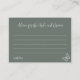 Célébrez l'amour et le rire avec ce charmant conseil Fleurs Pré-Pré pour la carte de boîtier de mariée et de chambre. Dotée d'un design floral et doux inspiré des fleurs sauvages des prairies, cette élégante carte d'encart est parfaite pour les douches nuptiales, les mariages ou les fiançailles. Laissez vos invités partager des conseils sincères, des voeux de bien ou des paroles de sagesse d'une belle façon que le couple chérira pour toujours. Un ajout gentil et attentionné à votre suite de papeterie mariage! Parfait pour les fêtes à thème rustique, jardin, boho ou campagnard.