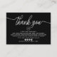 Personnalisez facilement ces cartes de remerciements avec votre logo et votre libellé en utilisant la section "personnaliser ce modèle" ou cliquez sur le lien "customiser plus loin" pour changer les styles, les couleurs et la mise en page de la police en suite. Il y a également de la place au dos de la carte pour ajouter plus de texte ou une photo de votre choix.