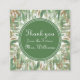 Avec un eucalyptus vert rafraîchissant avec des feuilles vintages et intemporels de parties scintillant d'or et des cercles verts aux bords blancs, cette Carte de remerciements est un choix élégant, moderne et chic pour votre Fête des mariées. Personnalisez le texte pour un message d'appréciation plus personnel ou laissez-le comme il est seulement en changeant les noms.