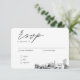 Mariage de script minimaliste classique carte de boîtier RSVP personnalisée avec vos informations. Entrez l'outil de conception Zazzle pour une personnalisation plus poussée, comme l'emplacement de texte ou pour ajouter une quatrième option de repas. Assurez-vous de comparer les différents types de papier pour sélectionner votre texture préférée et de vérifier la collection complète pour acheter les enveloppes de publipostage correspondantes.