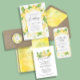 Notre collection "Lemon Tree Destination Wedding" présente des illustrations de branche de citron et citron, associées à des polices élégantes facilement personnalisables dans lesquelles toutes vos informations sont écrites. Cette collection a quelques options de couleurs arrière - plans : bleu foncé, noir et blanc. Consultez notre magasin pour plus d'articles assortis parfaits pour un mariage d'été ou de destination.