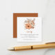 Mini Boîtier RSVP carré Élégant Automne Florales Mariage 2,5". Ajoutez votre code QR à votre page de réponse sur votre site Web mariage au verso en remplaçant le code QR sur l'exemple. . Vous pouvez créer des codes QR gratuitement en ligne. Il suffit de chercher "créateur de code QR" et beaucoup d'options viennent créer gratuitement. Cette conception a de belles fleurs d'automne brun et crème et le feuillage bordant le côté droit et élégante typographie minuscule.