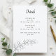 Keep your wedding timeline beautifully organized with this minimalist botanical details card. Featuring elegant typography and delicate line-drawn greenery, this design blends seamlessly with modern, classic, and timeless wedding styles. A clean black-and-white palette ensures clarity while maintaining a refined, upscale look.