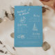 Modern Blue Script Lake Bachelorette Weekend Details Enclosure Card. An elegant and modern, blue and beige lake bachelorette weekend details card, designed with script lettering, and trendy doodles. Personalize with your bachelorette weekend itinerary, and further details below.