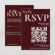Carte D'accompagnement Modern Elegant Burgundy Wedding QR CODE RSVP