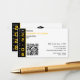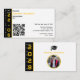 Graduation party enclosure card in black, white, and yellow — compact bold editorial design for the driven, well-rounded graduate, with QR code, RSVP and contact details on the front, round photo medallion and name on the back. Strong vertical typography down a dramatic black banner and oversized yellow numerals anchor the front alongside a scannable QR code, RSVP date, venue, and contact details — everything guests need in one clean, structured layout. The back presents the graduate's name and photo in a polished round medallion, making this small but mighty card a complete and confident addition to any graduation party invitation suite. Fully customizable for your Class of [Your Year] celebration. Need design support? Email remidevandesigns@gmail.com RemideVan©