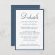 This wedding details card features “Details” in refined navy calligraphy, paired with classic serif typography for your accommodations, reception information, and wedding website. The deep navy border frames the design with a tailored, polished finish that feels both timeless and formal. With its crisp contrast and elegant typography, this card is well-suited for traditional, black-tie, coastal, and evening weddings, offering a sophisticated way to share important guest information.