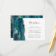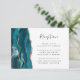 The left-hand edge of this elegant modern wedding reception enclosure card features a teal blue watercolor agate border trimmed with faux rose gold glitter. The title appears in handwriting script, with customizable text below in charcoal gray copperplate font on a white background. The reverse side features a matching teal blue and rose gold agate design.
