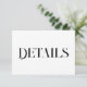 Carte D'accompagnement Modern Wedding Details | Minimalist Black & White