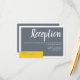 Carte minimaliste et contemporaine d'enceinte de réception de mariage avec un agencement moderne en gris et jaune. Le mot Réceptions est présenté dans une police de calligraphie blanche en gras sur un arrière - plan gris clair, tandis que les détails de la réception sont écrits dans une police blanche moderne. Le dos de la carte est personnalisable avec les initiales de la mariée et du marié et votre texte d'information facultatif (modifier ou supprimer l'exemple de texte). Modifiez facilement les champs de modèle pour ajouter vos informations de réception. Faisant partie de la collection "Modern contemporain gris & jaune mariage", cet article est également disponible en bleu, violet et vert Turquoise ; mélangez et assortissez différentes couleurs pour un faire-part de mariage unique. Pour plus de personnalisation, de changement de couleur ou de commandes personnalisées, n'hésitez pas à me contacter à acherryonthecake@hotmail.com (veuillez prévoir 1-2 jours ouvrables).