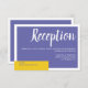 Carte minimaliste et contemporaine d'enceinte de réception de mariage avec un agencement moderne en bleu et jaune périwinkle. Le mot Réceptions est présenté dans une police de calligraphie blanche et audacieuse sur un arrière - plan violet clair, tandis que les détails de la réception sont écrits dans une police blanche moderne. Le dos de la carte est personnalisable avec les initiales de la mariée et du marié et votre texte d'information facultatif (modifier ou supprimer l'exemple de texte). Modifiez facilement les champs de modèle pour ajouter vos informations de réception. Faisant partie de la collection "Moderne contemporain bleu & jaune mariage", cet article est également disponible en gris, bleu, violet et Turquoise vert ; mélangez différentes couleurs pour un faire-part de mariage unique. Pour plus de personnalisation, de changement de couleur ou de commandes personnalisées, n'hésitez pas à me contacter à acherryonthecake@hotmail.com (veuillez prévoir 1-2 jours ouvrables).
