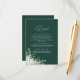 Assurez-vous que vos invités ont toutes les informations essentielles avec notre carte de détails Mariage Modern Emerald Green. Conçue avec une étonnante aquarelle de feuilles d'eucalyptus et de délicates fleurs de jasmin, cette carte complète parfaitement votre thème mariage de verdure ou d'aquarelle. Son style élégant, d'inspiration nature, apporte une touche raffinée tout en informant vos clients sur l'hébergement, les détails du lieu ou les événements spéciaux.