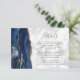 Le bord gauche de cette élégante carte d'enceinte de détails mariages moderne dispose d'une bordure en aquarelle bleu marine ornée d'une parties scintillant en faux or. Le titre apparaît dans un script d'écriture manuscrite de couleur or, avec le texte personnalisable ci-dessous en police de cuivre noir sur un arrière - plan en marbre gris et blanc. L'envers est assorti d'un design d'agate bleu et or.