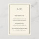 Carte Mariage simple avec un design moderne et élégant avec votre monogramme à deux lettres en haut et vos informations de réception entourées d'une fine bordure. Tous les éléments de conception sont en noir sur un arrière - plan de crème d'ivoire neutre et peuvent être changés dans l'outil d'édition de conception. Un design chic et design qui conviendra à un couple minimaliste. Ces cartes d'enclos sont un complément parfait à votre suite si votre réception se tient à un endroit différent de votre cérémonie.