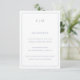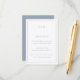 Carte Mariage simple avec un design moderne et élégant avec votre monogramme à deux lettres en haut et vos informations de réception entourées d'une fine bordure. Tous les éléments de conception sont en bleu poussiéreux et peuvent être modifiés dans l'outil d'édition de conception. Un design chic et design qui conviendra à un couple minimaliste. Ces cartes d'enclos sont un complément parfait à votre suite si votre réception se tient à un endroit différent de votre cérémonie.