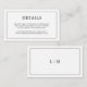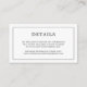 Simple petite carte de boîtier mariage avec un design moderne mais élégant avec vos détails entourés d'une fine bordure et votre monogramme sur le dos. Tous les éléments de conception sont en noir sur un arrière - plan blanc et peuvent être modifiés dans l'outil d'édition de conception. Un design chic et design qui conviendra à un couple minimaliste. Utilisez ces cartes d'enclos pour indiquer l'itinéraire et tout autre détail important que vos invités pourraient avoir besoin de connaître, comme l'hébergement à l'hôtel, le stationnement, les informations sur la navette, etc.