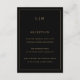 Carte Mariage simple avec un design moderne et élégant avec votre monogramme à deux lettres en haut et vos informations de réception entourées d'une fine bordure. Tous les éléments de conception sont en faux or sur un arrière - plan noir et peuvent être changés dans l'outil d'édition de conception. Un design chic et design qui conviendra à un couple minimaliste. Ces cartes d'enclos sont un complément parfait à votre suite si votre réception se tient à un endroit différent de votre cérémonie.