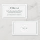 Simple petite carte de boîtier mariage avec un design moderne mais élégant avec vos détails entourés d'une fine bordure et votre monogramme sur le dos. Tous les éléments de conception sont en vert forestier et peuvent être modifiés dans l'outil d'édition de conception. Un design chic et design qui conviendra à un couple minimaliste. Utilisez ces cartes d'enclos pour indiquer l'itinéraire et tout autre détail important que vos invités pourraient avoir besoin de connaître, comme l'hébergement à l'hôtel, le stationnement, les informations sur la navette, etc.