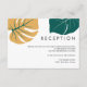 Conçue pour se coordonner avec notre collection de mariage tropical Monstera, cette carte d'enclosure de réception botanique élégante présente deux feuilles de monstera en jaune et vert, surmontant votre texte de message souhaité.
