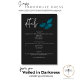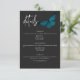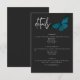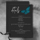 Cette carte de détails mariage présente un thème sombre et moody simple, mais étonnant. Un arrière - plan noir au charbon de bois foncé est la toile parfaite pour un seul papillon bleu turquoise, ses ailes étalées pour le vol. Unique et élégant, ce design peut être utilisé pour n'importe quelle saison. Créé par Simply Farmhouse Press.
