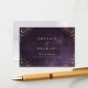 Ecriture manuscrite romantique coin calligraphie fleurie en couleur or faux rose sur moody profonde violet aquarelle arrière - plan, élégant et sophistiqué, grand mariage insérer des cartes pour mariage vintage, mariage d'automne ou d'hiver et mariage de soirée. Voir toutes les pièces correspondantes dans la collection.