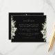 Une carte d'invitation de réception de mariage noire et plate avec une bordure de baies de neige et d'eucalyptus peintes à la main sur le devant et une couronne au dos de la carte. Tout le texte est entièrement modifiable et les points dispersés sur le devant et le dos peuvent être supprimés avant la commande si vous le souhaitez. Cette carte est disponible avec des motifs botaniques alternatifs, au format portrait et dans différentes couleurs. Veuillez consulter la Collection dans ma boutique pour voir toutes les options et les articles coordonnés.