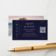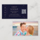 Mystical Rainbow Dark Navy Blue Budget QR Code RSVP Site de Mariage photo Sun Moon Stars Celestial Cosmic Astronomy Space Mariage Enclôture Cartes caractéristiques étoiles dorées simples sur un arrière - plan bleu marine foncé avec votre site de mariage personnalisé QR code et personnalisez avec votre photo préférée au verso. Personnalisez en modifiant le texte dans les zones de texte fournies. Conçu par Evco Studio www.zazzle.com/store/evcostudio