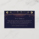 Mystique Arc en ciel bleu marine foncé Détails Mariage Sun Moon Stars Astronomie Galaxie céleste Mariage cosmique Les cartes de boîtier présentent un arc-en-ciel couleur soleil, lune et étoiles cadre sur un arrière - plan bleu marine foncé. Ajoutez la carte de boîtier à votre suite d'invitations pour informer les clients des informations essentielles dont ils auront besoin pour naviguer en toute transparence dans votre journée spéciale. Détails importants tels que l'itinéraire du lieu, l'information sur l'hébergement, les cérémonies et l'information sur la réception. Customisez à vos besoins. Conçu pour vous par Evco Studio. Afficher www.zazzle.com/store/evcostudio pour plus de produits dans cette collection