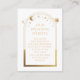 Mystical White Gold Sun Moon Stars Astronomie Mystical Celestial Mariage Website RSVP QR Code Enfermer Les cartes comprennent le soleil doré, la lune et les étoiles avec un arrière - plan blanc simple et élégant. Le texte peut facilement être personnalisé avec vos noms, le site Web mariage, le code QR scannable et le message pour un design mariage unique d'une gentillesse afin de tenir vos amis et votre famille à jour sur votre prochaine journée spéciale. Conçu pour vous par Evco Studio. Afficher www.zazzle.com/store/evcostudio pour plus de produits dans cette collection